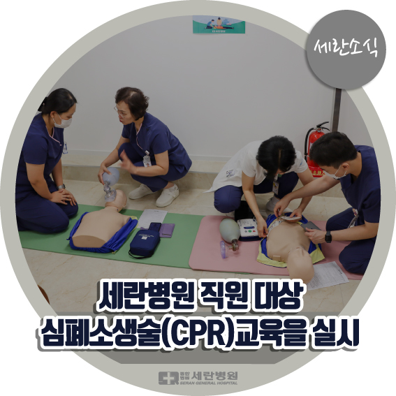 안녕하세요. 세란병원입니다. 세란병원에서 직원 대상 심폐소생술(CPR)교육을 실시하였습니다.