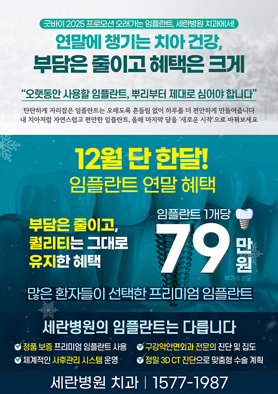 굿바이 2025 프로모션 치과 임플란트 연말에 챙기는 치아 건강, 부담은 줄이고 혜택은 크게