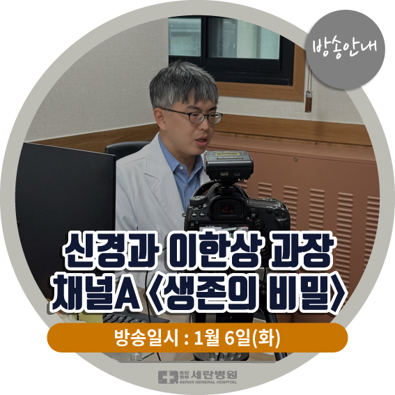 이번 방송에서는 뇌혈관질환과 지주막하출혈, 면역력에 대해 뇌신경센터 이한상 과장님이 쉽고 자세히 설명해주실 예정입니다. 겨울철 뇌혈관질환이 궁금하시다면 이번 방송 꼭 놓치지 마세요! 방송 일시 : 2026년 1월 6일 화요일 오후 1시 20분 프로그램 : 채널A <생존의 비밀> |