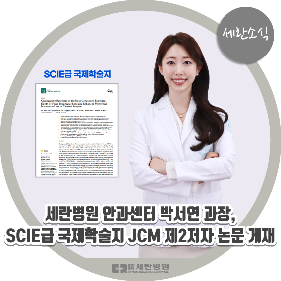 [세란소식] 세란병원 안과센터 박서연 과장, SCIE급 국제학술지 JCM 제2저자 논문 게재 2025-10-20 hit.130  |