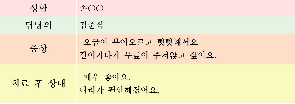 양쪽 퇴행성 관절염으로 양쪽 무릎인공관절 수술을 하신 손○○님의 치료후기입니다.